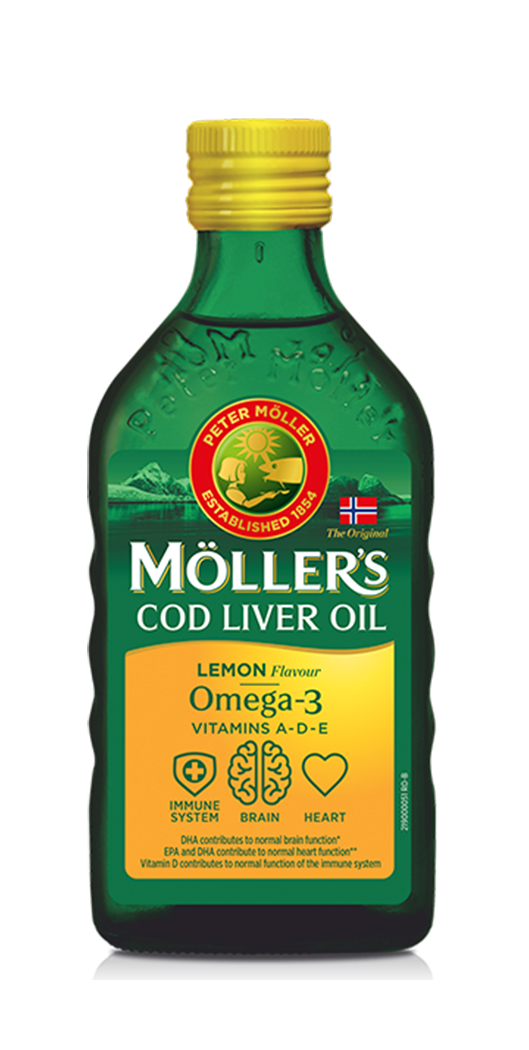 Moller’s Omega-3 ulje jetre bakalara sa ukusom limuna je dodatak ishrani koji predstavlja izvor omega-3 masnih kiselina (eikozapentaenska kiselina: EPA i dokozaheksaenska kiselina: DHA) i vitamina A, D, i E.