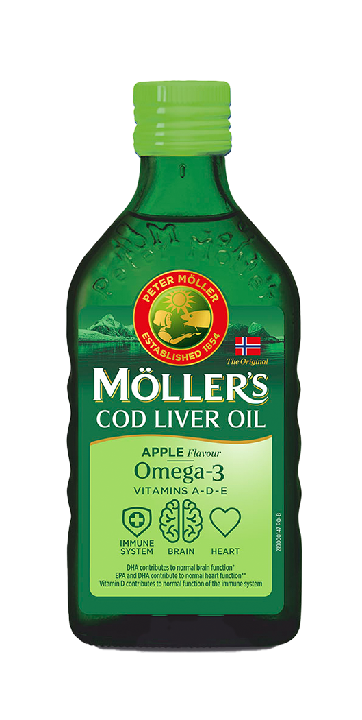 Moller’s Omega-3 ulje jetre bakalara sa ukusom jabuke je dodatak ishrani koji predstavlja izvor omega-3 masnih kiselina (eikozapentaenska kiselina: EPA i dokozaheksaenska kiselina: DHA) i vitamina A, D, i E.